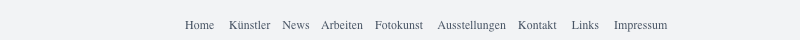 Liste der Ausstellungen und Veröffentlichungen 2014 UPK Kunstpreis, Kassel 2014 1. Kasseler Kunstmesse, documenta-Halle Kassel 2014 Internationlae Kunstmesse Endingen 2013 Einzelausstellung Deutsches Adipositas Zentrum, Frankfurt a.Main 2013 Galerie Böhner, Mannheim, Veröffentlichung im Kunst-spektrum.de 2013 seeMe, Teilnahme Digitale Kunstausstellung auf Monitoren sowie Projektion an Wolkenkratzer, New York 2013 (G) Art Geschoss, Wolfenbüttel, Galerie auf Zeit 2013 (G) Teilnahme an der Kunstausstelkung AURAKURE, Hamburg 2013 (März) CD-Promotion durch das Museum of the Americas (Doral, Florida) auf der Art Dubai 2013 2013 Veröffentlichungin der Zeitschrift "Artmospere" (Barcelona), Contemory german artistsparticipating at the museum 2013 Veröffentlichung Artikel im Kunstmagazin "chilli-con-arte.de" 2013 Veröffentlichung im Künstlerlexikon lex-art.eu und lex-art.de 2013 Silbermedallie mit summa cum laude 14.Offener Kunstpreis, Kunsthof Schloss Reinharz 2012 (E)Einzelausstellung Frankfurt-Sachsenhausen, Eröffnung des Adipositaszentrums 2012 (G/M) Kunst an der Sternwarte, Hamburg 2012 Veröffentlichung im Kunstkatalog des Kunstversandhauses ars artis 2012 Veröffentlichung in "International Contempory Artists", Vol IV,ICA, New York 2012 CD-Promotion Museum of the Americas zur Art Basel 2012 CD-Promotion Dallas Art Fair (MoA) 2012 Katalogveröffentlichung zur Ausstellung Gallery M, Wien / Bratislava 2011 (G) Gruppenausstellung Gallery M, Wien 2011 (M) Beteiligung an der Kunstmesse Lineart, Gent, Gallery M, Wien 2011 Veröffentlichung und Abdruck im Künstlerverzeichnis von "Art in America", (08/201), Guide Museums / galleries / artists 2011 (E) Einzelausstellung Dialysezentrum Elsenfeld 2011 (M) Beteiligung an der Kunstmesse Klagenfurth, Ars artis, Villach/Österreich 2011 (E) Einzelausstellung Bankhaus Merck und Finck, Koblenz 2011 Zusammenarbeit mit JANO-Projects, Barcelona, zur Einrichtung von art-hotols mit Originalkunstwerken 2011 Präsentation durch das Museum of the Americas, Florida, auf der Dallas Art Fair (CD) 2011 Gewinner beim Kunstwettbewerb artavita (83rd painter) 2011 Distribution Künstler-CD auf der Art Fair Santa Fe (New Mexico) durch MoA, Florida 2011 Veröffentlichung im Kunstkatalog des österreichischen Kunsthauses Ars artis, Villach 2011 CD-promotion mit 30 Arbeiten auf der Art Dubai durch das Museum of the Americas 2010 (G) Gruppenausstellung "Hausbesuche" zum 175-jährigen Bestehens des Kasseler Kunst- vereins, Fredrizianum, Kassel 2010 (G) Gruppenausstellung "Türe und Tore öffnen sich..."in der Galerie Kunstleben, Berlin 2010 (E) Einzelausstellung Fa. Klug (klug-modernisiert), Obernburg/Unterfranken 2010 (E) Einzelausstellung Dialysezentrum Elsenfeld 2009 (E) Einzelausstellung Dialysezentrum Elsenfeld 2009 (E) Einzelausstellung anlässlich des Neujahrempfangs des ZUB (Zentrum für umwelt- bewusstes Bauen) der Universität Kassel und der Fraunhofergesellschaft 2009 (E) Einzelausstellung Kunsthaus Deutschmann, Kassel 2008 (E) Einzelausstellung zur Eröffnung des Klinikneubauesin Miltenberg (Rhön-Klinikum AG) 2005 (E) Einzelausstellung Galerie und Kunsthaus Deutschmann, Kassel 2004 (E) Einzelausstellung Fa. apllied security (apsec), Stockstadt 2004 (E) Einzelausstellung Einrichtungshaus Brede in Niestetal 2003 (E) Einzelausstellung Gründerzentrum Großwallstadt 1999 (E) Einzelausstellunjg Krankenhaus Erlenbach am Main 1998 (E) Einzelausstellung Einrichtungshaus Brede, Niestetal 1978 Fotoausstellung am Ev. Krankenhaus Bad Godesberg u.a. zusammen mit Wolfgang Volz (Fotograph von christo und Jeane-Claude) |